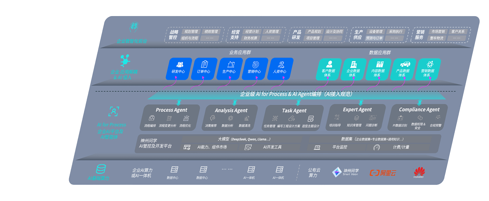端到端的一站式AI工作空间深度融合了从企业战略规划到日常经营的全流程业务板块,,定向解决车企内部领域多、、、、部门多、、链条长、、、场景碎片化等难题,,,,支持车企快速构建以AI为核心的生产力写作体系,,实现任务执行与AI能力的无缝集成与交互